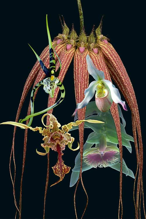 Mit Schwingungsinformationen von Nanodes medusae, Brassia Rex, Dendrobium spectabile, Bulbophyllum Elizabeth Ann ‘Buckleberry’, Phragmipedium Carol Kanzer