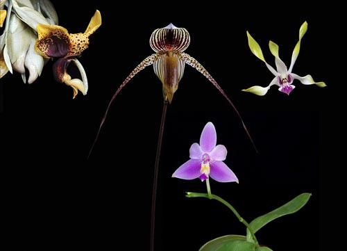 Mit Schwingungsinformationen von Dendrobium Miva Plum, Paphiopedilum Wössner’s Black Wings, Phalaenopsis violacea var. Mentawai & Stanhopea Havre des Pas.