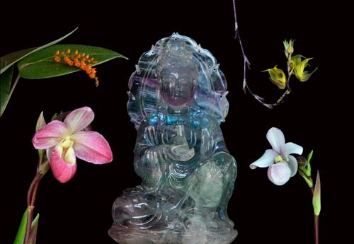 Mit Schwingungsinformationen von Scaphosepalum bicristatum, Pleurothalus truncata, Phragmipedium schlimii, Phragmipedium Desormes, Regenbogen-Fluorite Edelstein