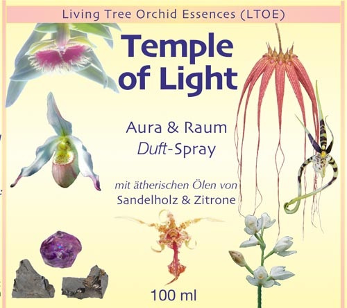 Das "gelbe" Temple of Light DUFT-Spray beinhaltet Core of Being (Nr.10), Protective Presence (Nr.30), Pushing back the Night (Nr.32), Renewing Life (Nr.34), Heaven's Gate (Nr.95) & Clarifying the Shadow (Nr.182). & White Orchid (Himalayan Flower Enhancers).